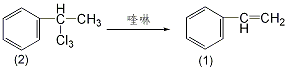into a reaction bottle equipped with a stirrer, reflux condenser and thermometer, add 70g of quinoline and 0.5g of phenol①, and heat with an electric heating mantle to 190°c. in addition, 70 g (0.5 mol) of a-chloroethylbenzene (2) was heated to 150°c, quickly added to the above reaction bottle, and the mixture was heated for 15 minutes, during which time the temperature of the mixture was reduced to 170~150°c. after cooling, pour it into 100ml of 10% dilute hydrochloric acid and stir thoroughly. separate the upper organic layer ②, wash with water twice, and dry over anhydrous calcium chloride. fractionate under reduced pressure and collect the fractions at 40~50℃/2.67~3.3kpa to obtain 45g of styrene (1) with a yield of 87%. note: ① the purpose of adding phenol is to prevent the polymerization of styrene, and phenol is a polymerization inhibitor. ② the crude product contains a small amount of unreacted a-chloroethylbenzene, which can be removed during fractionation (50~80℃/2.67~3.3kpa). [32]