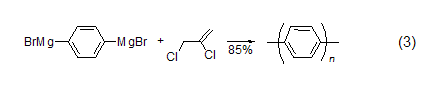 aryl coupling reaction in the aryl grignard reagent free radical coupling reaction, 2,3-dichloropropene is the electron acceptor. polyparaphenylene (ppp) can be produced using 2,3-dichloropropene and a difunctional aryl grignard reagent (formula 3)[4].