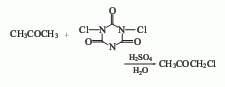 3. chlorinated cyanuric acid the acid method uses trichlorocyanuric acid as the halogenating agent, sulfuric acid aqueous solution as the catalyst, and performs a chlorination reaction on acetone. this process was developed abroad in the early 1990s. its synthesis method is simple and its product content is high.