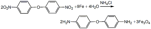 (2) reduction reaction add 918kg of alcohol into the reduction reaction kettle, add 10kg of ammonium chloride and 50kg of iron filings while stirring, add 25kg of 4,4′-dinitrodiphenyl ether when the temperature reaches 95°c, and stir for 0.5h. then add the second batch of 40kg iron filings and 20kg 4,4’-dinitrodiphenyl ether, and stir for 0.5h. then add the third batch of 40kg of iron filings and 20kg of 4,4’-dinitrodiphenyl ether, still maintaining the reaction temperature at 100°c, and take samples for 1.5 hours to analyze the reaction end point. after the reaction is completed, add 12 kg of sodium bisulfite, stir and dissolve, then use a tubular suction filter to pump the reaction material while it is hot into the crystallization kettle for cooling and crystallization for about 8 hours. then it is filtered, the filtrate butanol is distilled and recycled, and the filter cake is washed with water until there is no butanol to obtain crude 4,4’-diaminodiphenyl ether.