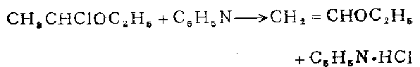 at room temperature, 24 g (0.22 mol) of 1-chloroethyl ethyl ether was added to 40 ml (0.5 mol) of ethyl ether. during distillation, 14 ml of distillate can be collected before the steam temperature reaches 100°c. the distillate was then fractionated through a 1 cm long pine needle-shaped fractionating column to obtain ethyl vinyl ether, weighing 6.8 g (43%).