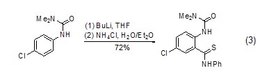 under the action of n-butyllithium, aromatic hydrocarbon derivatives can also react with phenyl isothiocyanate reaction occurs on the benzene ring (formula 3)[9].