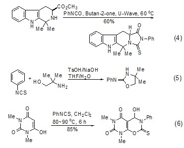 cyclization reaction phenyl isothiocyanate can be incorporated into the ring structure to produce a variety of heterocyclic compounds (formula 4~formula 6)[10,11].