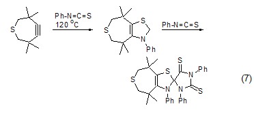 [3+2 ] cycloaddition reaction phenyl isothiocyanate can undergo cycloaddition reaction with alkynes, and the organic active intermediate carbene formed reacts with excess phenyl isothiocyanate to form the corresponding heterocyclic compound (formula 7 )[12].