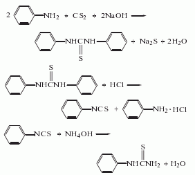 it is obtained by the addition reaction of aniline with sulfuric acid and then with sodium thiocyanide.