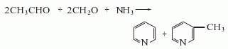 4.the synthesis method using aldehydes or ketones and ammonia as raw materials is the most common industrial synthesis method of pyridines. various cheap and easily available aldehydes or ketones are reacted with ammonia to obtain various pyridines. reaction of saturated fatty aldehyde and ammonia, 3 mol of saturated fatty aldehyde and 1 mol of ammonia form a pyridine ring. theoretically, the amount of ammonia used is 1/2 or 1/3 of the aldehyde or ketone, but in order to prevent the yield and catalyst activity from decreasing, the excess is usually 0.9 to 9 times. the reaction conditions are: the air velocity of the mixed gas is 500~1000/h, and the reaction temperature is 400~500℃. alumina-silica catalysts are usually used, and various metals are added to improve the yield, extend the life of the catalyst and facilitate regeneration. the reaction formula is as follows: