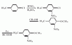 1. obtained from nitration, methoxylation and reduction of p-chlorotoluene. add the mixed acid to p-chlorotoluene at 15-20°c, stir for 2 hours at 30°c, dilute with water, separate the spent acid, and wash with water to obtain 4-chloro-3-nitrotoluene (yield 30.6%) and 4-chloro-2- nitrotoluene (yield 56.7%), separate the two by fractionation and crystallization to obtain 4-chloro-3-nitrotoluene. react it with methanol and sodium methoxide solution, neutralize and separate with sulfuric acid to obtain 3-nitro-4-methoxytoluene, with a yield of 85.6%. after reduction with water, iron powder and formic acid, it is obtained by multiple extraction and distillation with solvent gasoline.