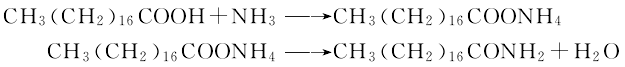 1. put 1 mol of stearic acid into the reaction kettle and heat to melt. continue to raise the temperature to 200°c with stirring, and begin to introduce ammonia gas. ammonia gas is introduced from the bottom of the kettle to speed up the stirring speed and strengthen the contact between gas and liquid. by-product water and unreacted ammonia enter the recovery device through the condensation system. when ammonia gas is introduced which is twice the mass fraction of stearic acid, take a gas sample and check. if the gas no longer contains water, the reaction has reached the end point. stop passing ammonia and discharge the material while it is hot for processing and shaping. dissolve it in ethanol, add activated carbon to decolorize it, filter it while it’s hot, cool it for crystallization, wash the crystals with water, and dry them to get the pure product.