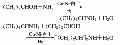 1. acetone catalytic hydrogenation and amination method. after acetone is vaporized, it is mixed with a certain amount of ammonia and hydrogen, and the catalytic reaction is continuously carried out under normal pressure and appropriate temperature. the catalyst is ni-cu-clay, and the reaction the product is distilled and fractionated to obtain the finished product. raw material consumption quota: acetone 1389kg/t, liquid ammonia 376kg/t, hydrogen (99%) 1023m3.