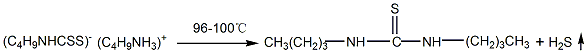 2. butyldithio butylammonium carbamate decomposes when heated to 96 to 100°c, releasing hydrogen sulfide gas to generate dibutyl thiourea. after separation, washing with 70-80℃ hot water, cooling and crystallization, crushing, and drying at 30-40℃, the finished product is obtained.