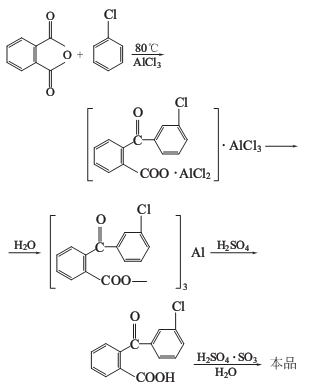 phthalic anhydride and chlorobenzene react in the presence of anhydrous aluminum trichloride to obtain chlorobenzoyl aluminum benzoate double salt, which is hydrolyzed and acidified, and then smoked sulfuric acid is dehydrated, loop closed, separated and filtered to obtain the finished product.
