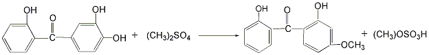 (3) ultraviolet absorber uv synthesis of -24: 2,2′,4-trihydroxybenzophenone and dimethyl sulfate are reacted under stirring and the temperature is controlled below 30°c for 2 to 4 hours. after the reaction is completed, the finished product is obtained by standing for stratification, vacuum distillation, cooling, activated carbon decolorization, suction filtration, concentration, cooling, crystallization, centrifugation, and low-temperature drying.