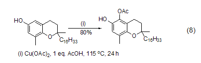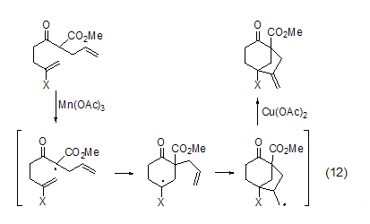use in combination with free radical initiator , copper acetate can also participate in the oxidation reaction of free radicals. for example, β-carbonyl ester obtains free radicals under the oxidation of mn(oac)3, and then undergoes intramolecular cyclization to obtain alkyl radicals, which are then oxidized under the action of copper acetate. oxidation to the corresponding alkene (formula 12)[9].