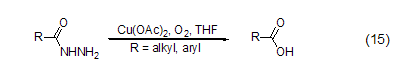 copper acetate can react with nitrogen-containing compounds effectively coordinated, it can participate in the reaction of nitrogen-containing compounds as a lewis acid. for example, a catalytic amount of copper acetate can convert hydrazide to carboxylic acid in the presence of oxygen (equation 15)[12].