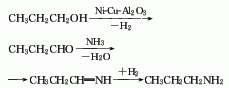 1. 1. n-propanol amination method uses propanol as raw material and obtains it through catalytic dehydrogenation, ammoniation, dehydration and hydrogenation (see “tripropylamine”). according to relevant data reports, the above reaction uses nickel – copper-pumice is used as a catalyst, which is beneficial to the generation of dipropylamine; using nickel-copper-activated alumina as a catalyst is beneficial to the generation of tripropylamine. 2. the acrylonitrile hydrogenation method uses acrylonitrile as raw material, copper-nickel compounds as catalysts, and performs catalytic hydrogenation at a temperature of 40-250°c and a pressure of 0-4.9mpa to obtain dipropylamine. in addition, when hydrogenating propionitrile or acrylonitrile using a rhodium catalyst with carbon as a carrier and using excess hydrogen to continuously remove ammonia, the selectivity to generate dipropylamine is over 85%, n-propylamine is rarely generated, and tripropylamine is not generated at all. . a high proportion of dipropylamine is also obtained by reductive amination of propionaldehyde under the action of rhodium catalyst.