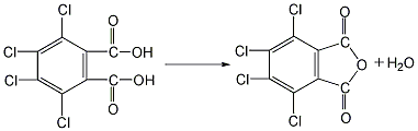 3. preparation of tetrachlorophthalic acid by dehydration put it into the reactor and heat it to 98°c to remove one molecule of the two hydroxyl groups in the molecule to obtain the finished product.