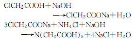 2.the reaction between chloroacetic acid and sodium hydroxide produces sodium chloroacetate, which then reacts with ammonium chloride to produce sodium nitrilotriacetate, which is then acidified the finished product is obtained.