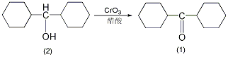 add 10g (0.051mol) of dicyclohexylmethanol (2) and 50ml of glacial acetic acid into the reaction bottle. slowly add 11g of chromic anhydride (0.11mol) while stirring. maintain the reaction temperature at 20~30°c and add dicyclohexylcarboxylic acid dropwise. after adding a mixture of 22g methanol (0.112mol) and 80ml glacial acetic acid, stir and react at room temperature for 0.5h. slowly raise the temperature to 75°c and react at 75°c for 0.5h. cool and adjust the ph to above 10 with 20% sodium hydroxide aqueous solution. extract with diethyl ether (50ml×3), combine the diethyl ether extracts, wash with water, and dry over anhydrous sodium sulfate. filter, evaporate the ether, and then distill under reduced pressure to collect the fraction at 155~158℃/2.1kpa to obtain 26g of dicyclohexylmethylketone (1), with a yield of 81%. nd171.4850.[1]