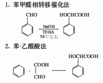 mandelonitrile (3): in a reaction bottle equipped with a stirrer and thermometer, add 350ml of water and 100g of sodium cyanide (2.0mol). stir to dissolve, add 212g (2.0mol) of newly distilled benzaldehyde (2), add about 300ml of saturated sodium bisulfite solution under vigorous stirring, control the reaction temperature at 30~35°c, and finish adding in 20 minutes (ice can be used water bath cooling). after the addition was completed, the reaction was stirred for 0.5 h. after standing, the upper orange-red oily substance was separated to obtain about 220g of crude mandelonitrile (3). mandelic acid (1): equipped with a stirrer. in the reaction bottle of the thermometer, add 300 ml of concentrated acetic acid, heat to about 60°c, and add 220 g of the above mandelonitrile (3) in batches (note that the reaction should be carried out in a fume hood). after the reaction was stable, the reaction was heated in a boiling water bath for 2 hours. cool and leave overnight. suction filter the precipitated solid (containing ammonium chloride). extract the solid material twice with diethyl ether ① (400ml×2), and concentrate the diethyl ether solution to about 1/3 volume. cool and a solid precipitates. filter and dry to obtain 135g of mandelic acid (1). the yield is 44%. recrystallize with hot water, mp121~123℃. mp118℃ has also been reported. note: ① it can also be extracted with hot benzene. [1]