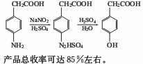 1.it is obtained by diazotization and hydrolysis of p-aminophenylacetic acid. prepare sodium salt of p-aminophenylacetic acid and alkali solution, then add sulfuric acid. cool to 0℃, control the temperature at 0-5℃, add sodium nitrate solution dropwise, and complete the reaction for 0.5h. . add the obtained diazo liquid dropwise to the dilute sulfuric acid at 90-95°c, complete the dripping in about 1 hour, and then continue the reaction for 1 hour. the reaction solution is decolorized, filtered, cooled and extracted with ethyl acetate. the finished product is obtained after recovering ethyl acetate from the extract. the yield is about 85%.