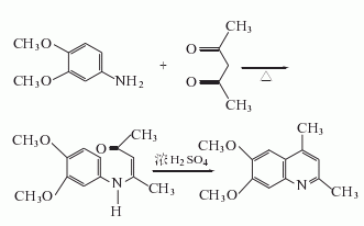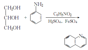 2.in the presence of nitrobenzene, ferrous sulfate and concentrated sulfuric acid, aniline reacts with glycerol to produce quinoline: