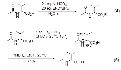 meerwein salt energy in aqueous phase acts on carboxylic acid to achieve esterification reaction (formula 4)[3]. under these reaction conditions, the amide group does not undergoo-alkylation. in the absence of aprotic solvents and bases, carboxylic acid amide compounds will only undergo an o-alkylation reaction (formula 5)[4].
