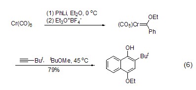 an important preparation of fisher carbene the method of complexing is to utilize the alkylation ability of triethoxyboron tetrafluoride. with the action of appropriate nucleophiles such as alkyllithium or aryllithium, fisher’s reagent can be synthesized in one step, and then other reactions can be realized (formula 6)[5].