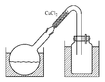 1. picture of the device for preparing cyanogen bromide. in a well-exhausted fume hood, place 500g bromine (160ml) in an il ground-mouth bottle cooled with ice-salt coolant. add 50 ml of water to cover the bromine. a solution of 170g nacn dissolved in 1200ml water was dripped in at a rate of 1 drop per second under vigorous stirring. the temperature of the reaction mixture was maintained below 20°c. local overproduction of cyanide (cn)x should be avoided. dilute the last 150 ml of nacn solution with water to 2 times the original volume, and continue to add the solution, shaking the flask vigorously after each addition. once a brown color appears that no longer disappears during shaking, the remaining nacn solution can be discarded (it takes about 5 hours to add nacn). place a thick glass tube bent into a v shape on a round-bottomed flask (as shown in the picture). the shorter arm is loaded with granular cacl2 and the cnbr is evaporated on a water bath. the product was collected in a wide-mouth bottle used as a receiver, and was in the form of snow-white crystals, 590 g, with a yield of 90% based on bromine.