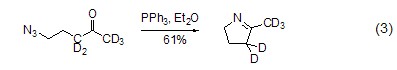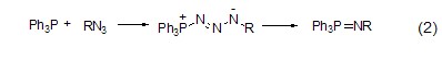 with azide reaction triphenylphosphine reacts with organic azide compounds to form iminophosphine (formula 2)[2].