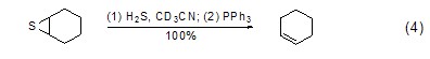 with organic sulfides reaction triphenylphosphine can convert episulfide compounds into alkenes (formula 4)[4] at room temperature.