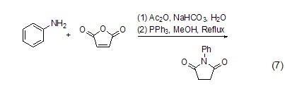 preparation of substituted pyrrole aniline, furandione and triphenylphosphine react to form 1-phenyl-2,5-pyrroledione (formula 7)[7].