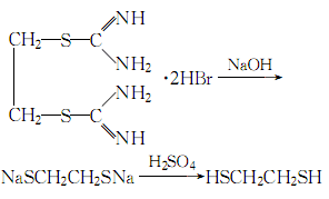 1. first, diisothioureaethane bromide is synthesized from dibromoethane and thiourea, and then treated with sodium hydroxide and sulfuric acid to obtain 1,2-dimercaptoethane.