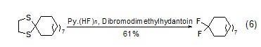 in pyridine hydrofluoric acid and mild under the action of oxidants, 1,2-ethanedithiol generates geminal difluoride compounds (formula 6)[5]. 1,3-dithiapentane reacts slowly and has a lower yield.