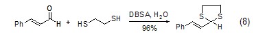 in water, use dodecane as a catalytic system, dbsa can react disulfide acetals and can be used to protect carbonyl compounds (formula 8) in aqueous media [7].