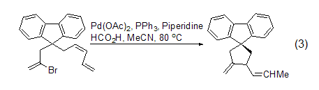 9-fluorenyl anion and 1 -the product of the continuous alkylation reaction of bromo-2,4-pentadiene and 2,3-dibromopropene will generate a cyclization product (formula 3) under heck reaction conditions [7].