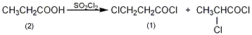1. obtained from the reaction of propionic acid with sulfuryl chloride and thionyl chloride. mix 59.2g propionic acid, 54.0g sulfuryl chloride and 61.6g carbon tetrachloride, then add 0.5g benzoyl peroxide. reflux in the dark for 1.5 hours until no more gas escapes. then add 190.4g of excess thionyl chloride and reflux for 4 hours. the solvent, excess thionyl chloride and propionyl chloride were then evaporated under normal pressure. fractionate the residue under reduced pressure, collect the 51-54°c (13.3kpa) fraction into 2-chloropropionyl chloride, and collect the 81-84°c (13.3kpa) fraction into 3-chloropropionyl chloride, accounting for 45% and 55% respectively. , the total yield is 75%.