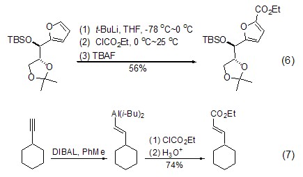in addition, grignard reagents, alkanes lithium reagents and organoaluminum reagents can also activate the sp2-carbon of the substrate, thereby causing an ethoxyesterification reaction with ethyl chloroformate (formula 6, formula 7) [6,7].
