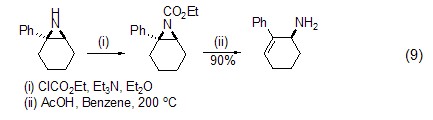 ethyleneimine can interact directly with ethyl chloroformate in an alkaline environment , the ethyl esterification reaction on n occurs (formula 9)[9].