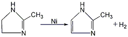 2.heat and melt 2-methylimidazoline (melting point 107℃), carefully add active nickel, raise the temperature to 200~210℃, and catalyze dehydrogenation reaction for 2 hours. lower the temperature to below 150°c, add water to dissolve, filter while hot, separate the active nickel, concentrate the filtrate until the temperature is above 140°c, discharge and cool to obtain 2-methylimidazole.