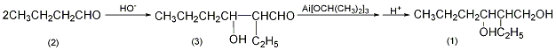 2-ethyl-3-hydroxyhexanal (3): in a reaction bottle equipped with a stirrer, thermometer, and dropping funnel, add 260g (3.6mol0) of n-hexanal (3) and 150ml of diethyl ether. cool to -3°c in the ice-salt bath, and begin to add 30 ml (10%) of potassium aldehyde oxide solution dropwise. the dripping should be slow at the beginning to prevent the temperature from exceeding 8°c. it takes about 3 hours to complete. after the addition is complete, the reaction is stirred for 5 hours. the organic layer was separated, washed three times with water, and dried over anhydrous sodium sulfate. recover the diethyl ether and distill off the low boiling matter under reduced pressure to obtain 200-220g of crude product 2-ethyl-3-hydroxyhexanal (3). 2-ethyl-1,3-hexanediol (1): in a reaction bottle equipped with a stirrer and a reflux condenser, add 33g (1.2mol) aluminum chips, 300ml anhydrous isopropyl alcohol, and add 0.1g iodine , heating in a water bath, generates aluminum isopropoxide, and releases a large amount of hydrogen. when most of the aluminum participates in the reaction, add 300 ml of anhydrous isopropyl alcohol. reflux for 6 hours to complete the reaction. the reaction system is dark gray. after cooling, add the 2-ethyl-3-hydroxyhexanal (3) prepared previously, install a packed fractionating column, and continuously evaporate the acetone generated. as the reaction proceeds, acetone gradually evaporates and isopropanol evaporates until the temperature at the top of the column reaches 80°c (at this time it is isopropanol and can be recycled and reused). cool and adjust to weak acidity with 15% sulfuric acid, and oily matter will precipitate. separate the oil, wash it with water three times, dry it over anhydrous sodium sulfate, and then perform fractional distillation. collect the fractions at 238-242°c to obtain 60g of 2-ethyl-1,3-hexanediol (1), with a yield of 23%. [1]