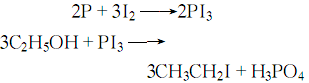 3. from ethanol and triiodine derived from the reaction of phosphorus. the operation process is as follows: place ethanol and red phosphorus in a reaction bottle, heat and reflux on a water bath, slowly add iodine particles, and continue to reflux. then the reaction liquid is evaporated to obtain a yellow crude product, which is then washed, dried and filtered to obtain the finished product.
