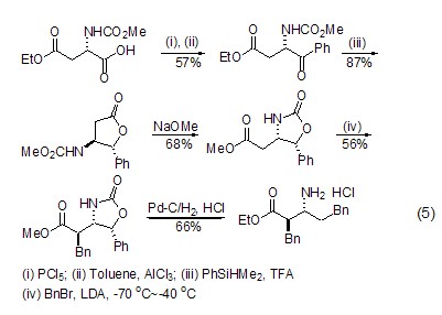 diastereoselective alkylation l-aspartate ester can be used in α– and β– alkylation occurs (formula 1) [2], among which the β-alkylation reaction is the most widely used. during the β-alkylation reaction, the amino acid moiety has an important influence on the diastereoselectivity of the reaction. at the same time, β-dicarbonyl compounds can also be prepared through β-alkylation of cyclic derivatives of l-aspartic acid [3].
