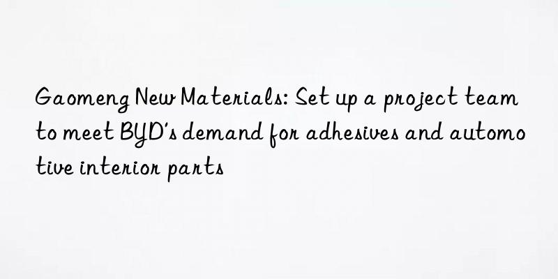 latest news: gaomeng new materials said in an investigation by an agency that the company has established a special project team, led by the general manager, to combine the company's adhesive materials, nvh sound insulation, vibration reduction and noise reduction materials. the project teams related to the two business departments are integrated into one large project team, and actively meet their needs for adhesives and automotive interior parts for byd interior parts and power battery assembly. the later team will actively promote the cooperation with byd. cooperation. up to now, the connection between the company and byd is still in the early stage of cooperation, communication and product testing. there is still great uncertainty about whether the company can successfully enter the byd supply system in the future.