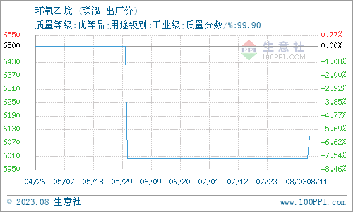 on july 29, the price of levima group’s ethylene oxide was flat, and the external implementation was 6,550 yuan/ton. compared with the same period last month, the chain fell by 13.25%, and fell by 9.03% year-on-year.