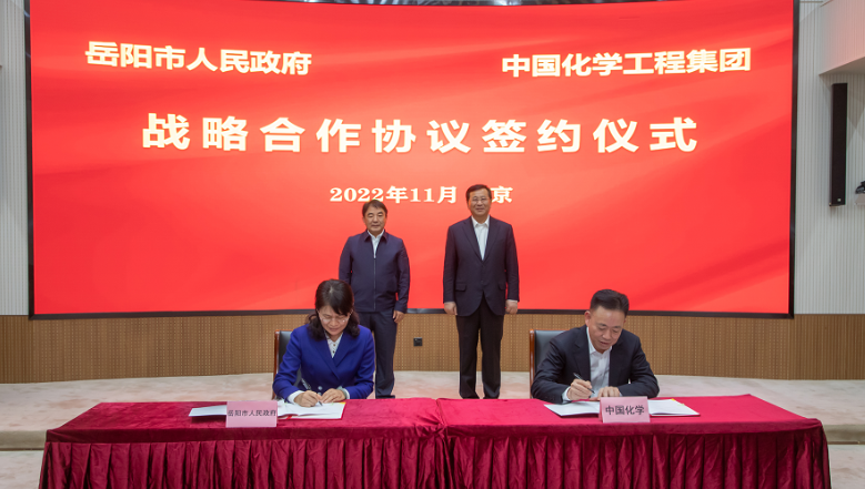 on november 10, 2022, chemchina and yueyang city signed a strategic cooperation agreement. according to the agreement, the two parties will cooperate in the fields of scientific and technological innovation, urban infrastructure construction, and the creation of high-end chemical new material industries, aiming to achieve mutual benefit and common development.