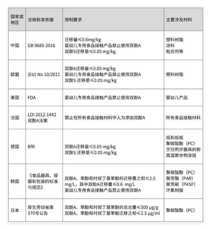 the eu plastics regulation (eu) 10/2011 authorizes bpa as a monomer of plastics, and the sml is 0.05mg/kg. the same sml is also suitable for food contact varnishes and coatings. since 2018, the use of bpa is prohibited in special food contact materials for infants and young children. the restrictions on bpa and similar substances in different countries are as follows: