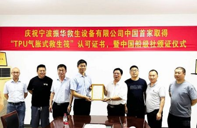 on july 5th, the first domestic tpu material inflatable liferaft type approval ceremony was held in ningbo, zhejiang. china classification society (ccs) zhejiang branch issued three series of tpu thermoplastic polyurethane elastomer material inflatable liferaft type approval certificates for ningbo zhenhua lifesaving equipment co., ltd. with a total of 19 specifications. qiu jianyong, deputy general manager of ccs zhejiang branch, attended the event and delivered a speech.