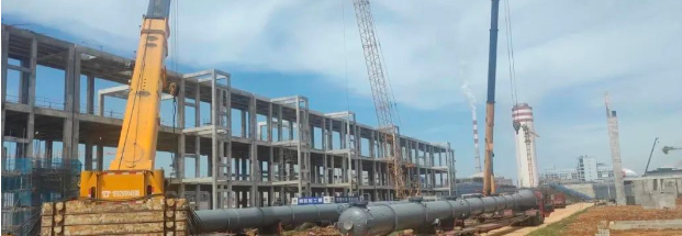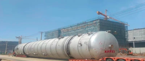in the caprolactam area, the φ4.6*36.0m solvent rearrangement scrubber has also arrived at the site and is waiting to be unloaded.