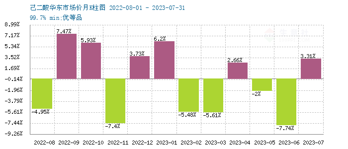 crude oil fluctuated and rose in july, which brought some support to pure benzene. however, due to the impact of lower nstream operating rates, demand for pure benzene continues to weaken, and prices are also difficult to perform well. according to the monitoring of sunrise, pure benzene fell by 4.91% in july. upstream still has a negative effect on adipic acid.