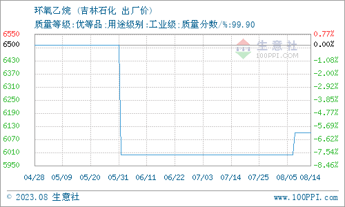 on july 29, the price of ethylene oxide in northeast china was flat, and jilin petrochemical implemented 6350 yuan/ton. compared with the same period last month, it fell by 15.89% month-on-month and by 11.81% year-on-year. fushun and liaoyang petrochemical implemented 6550 yuan / ton, compared with the same period last month, a month-on-month decrease of 13.25%, and a year-on-year decrease of 9.03%.